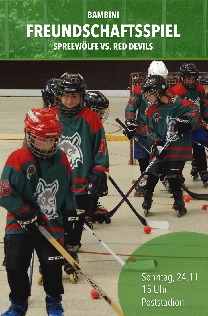 Wenn am Sonntag Nachmittag die NachwuchsspielerInnen der Spreewölfe und Red Devils die Fläche des Poststadions betreten, wird es richtig aufregend. Auf zwei Hälften wird gleichzeitig gespielt, und für viele ist es das erste Hockeyspiel ihres Lebens. Seid dabei und unterstützt die kleinen Spreewölfe auf ihrem Weg - Leidenschaft, Einsatz und Freude sind garantiert.