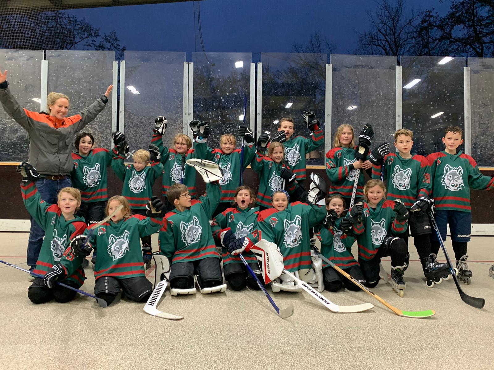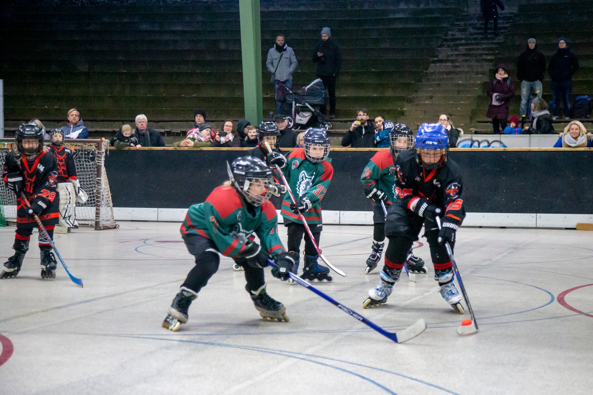 Spätestens mit dem ersten Anpfiff heizten die Bambinis ein und die Eltern konnten zwei Spiele gleichzeitig verfolgen. Angeführt von Julia spielten die Kleineren auf der ersten Hälfte, die Größeren lieferten sich auf der hinteren Hälfte ein attraktives Spiel. Dabei gab es viele Premieren. Bei den Spreewölfe konnte man zwei Goalies bei ihrem ersten Spiel anfeuern, und auch bei den FeldspielerInnen gab es geglückte erste Spiele. Dass die Tore vor allem auf Seiten der Red Devils fielen, beeindruckte die jungen Spreewölfe kaum. Sie kämpften von der ersten bis zur letzten Minute und hätten bestimmt noch weitergespielt, wäre nicht der Schlusspfiff irgendwann gekommen.