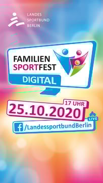Das „Familiensportfest 2020 digital“ ist ein einstündiges Sport-Magazin, das am Sonntag, dem 25. Oktober 2020, von 17 bis 18 Uhr auf der Facebook-Seite des LSB Berlin ausgestrahlt wird: https://www.facebook.com/LandessportbundBerlin/