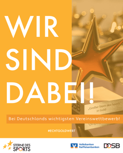 Heute Abend ist es soweit: Die Preisverleihung der Sterne des Sports auf Landesebene. Welchen Platz werden wir erreichen? Drücke uns die Daumen und sei auf Instagram und Facebook mit dabei.