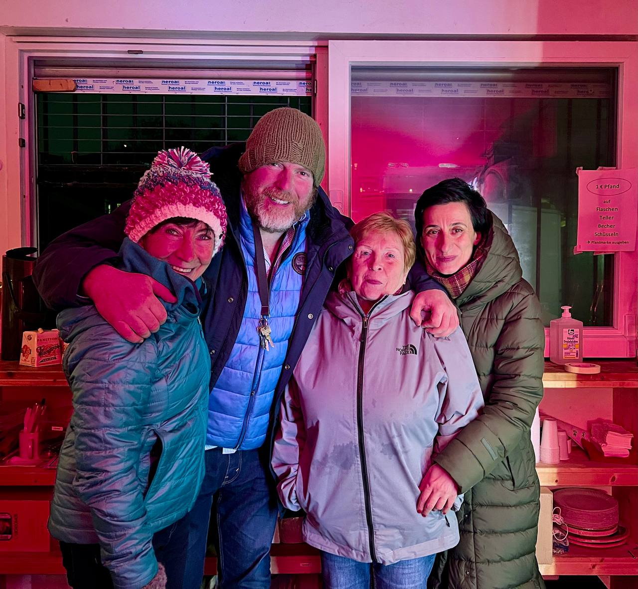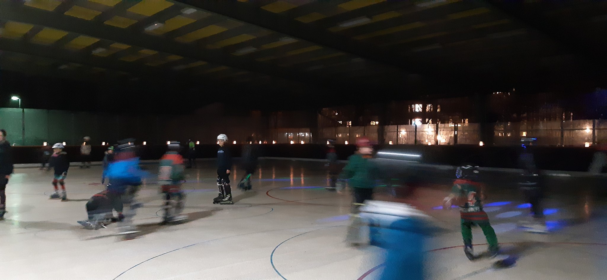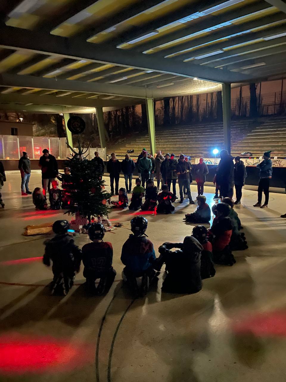 Jeffrey brachte spontan einen Freund mit und begleitete uns musikalisch durch den Abend. Bei schummrigem Discolicht und schöner Weihnachtsbeleuchtung getrauten sich auch viele Eltern, Geschwisterkinder und spontan vorbeischauende Nachbarn auf die Rolle. Dazwischen konnte man sich mit Glühwein oder Kinderpunsch wärmen. Der Höhepunkt war dann das Wichteln mit den älteren Kindern. Von Büchern zum Erlernen von Knoten bis zu selbstgebastelten Spielkarten war alles dabei.