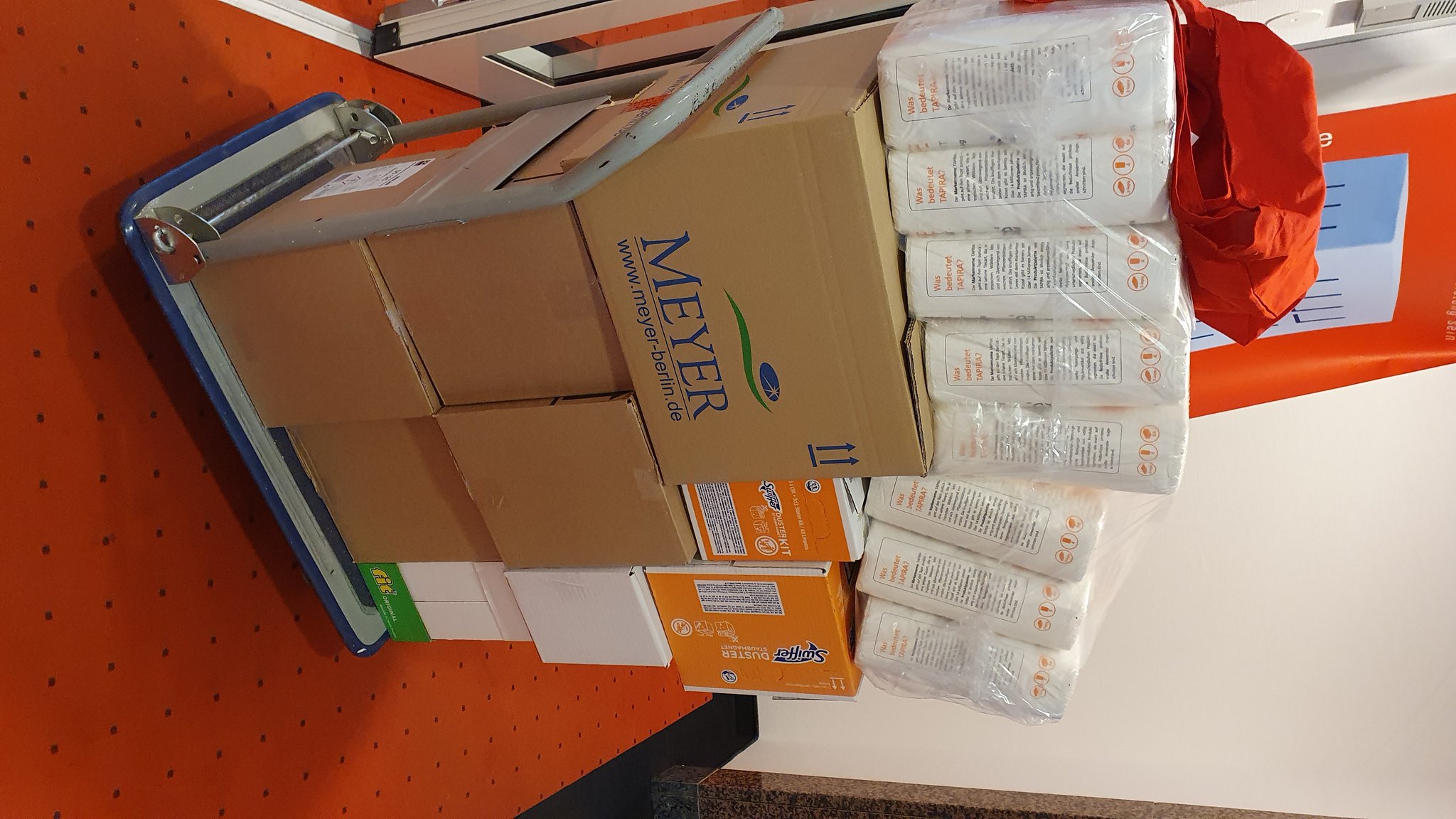 Arbeitgeber, Dussmann Service Deutschland GmbH, das Haus in Jüterbog mit Reinigungsmitteln versorgen können. Auch sind noch weitere Fahrräder und auch Tretroller gespendet und von uns abgeholt