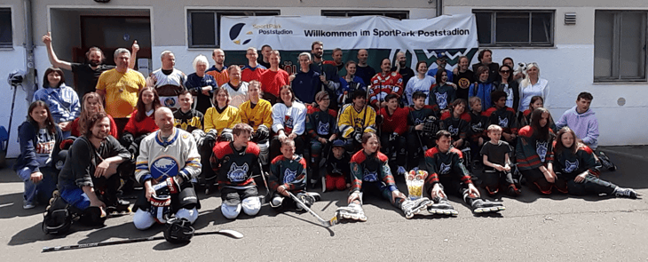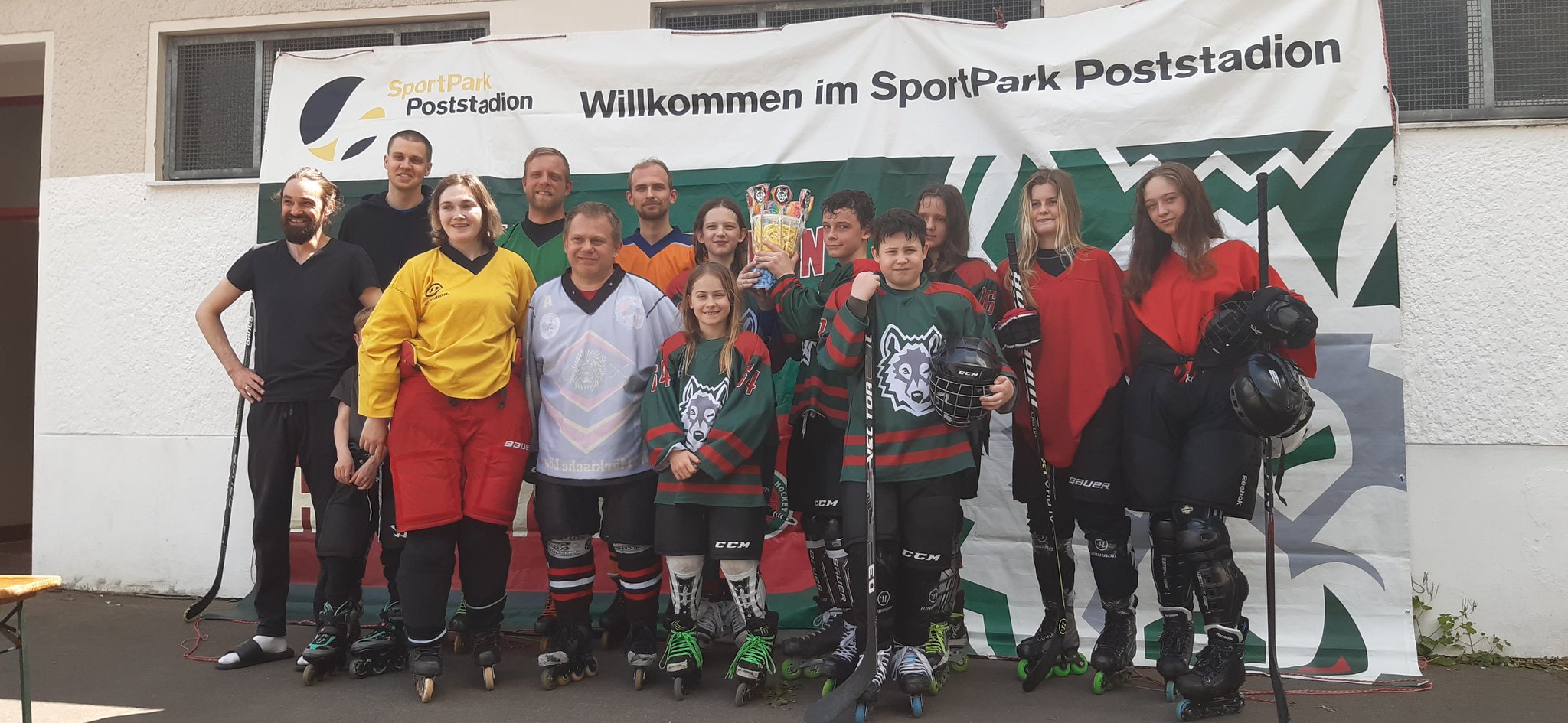 Am Sonntag fand der erste "Skaterhockey Mai Cup" statt. Eine bunte Mischung aus U-13-Kindern, Hobby- und Ligaspieler*innen und den Ukrainer*innen aus Jüterbog fand im Poststadion zum gemeinsamen Spiel zusammen. Insgesamt 6 Teams spielten um den eigens dafür hergestellten Pokal, der aus offensichtlichen Gründen kein Wanderpokal werden wird, dafür wunderbar geteilt werden kann.