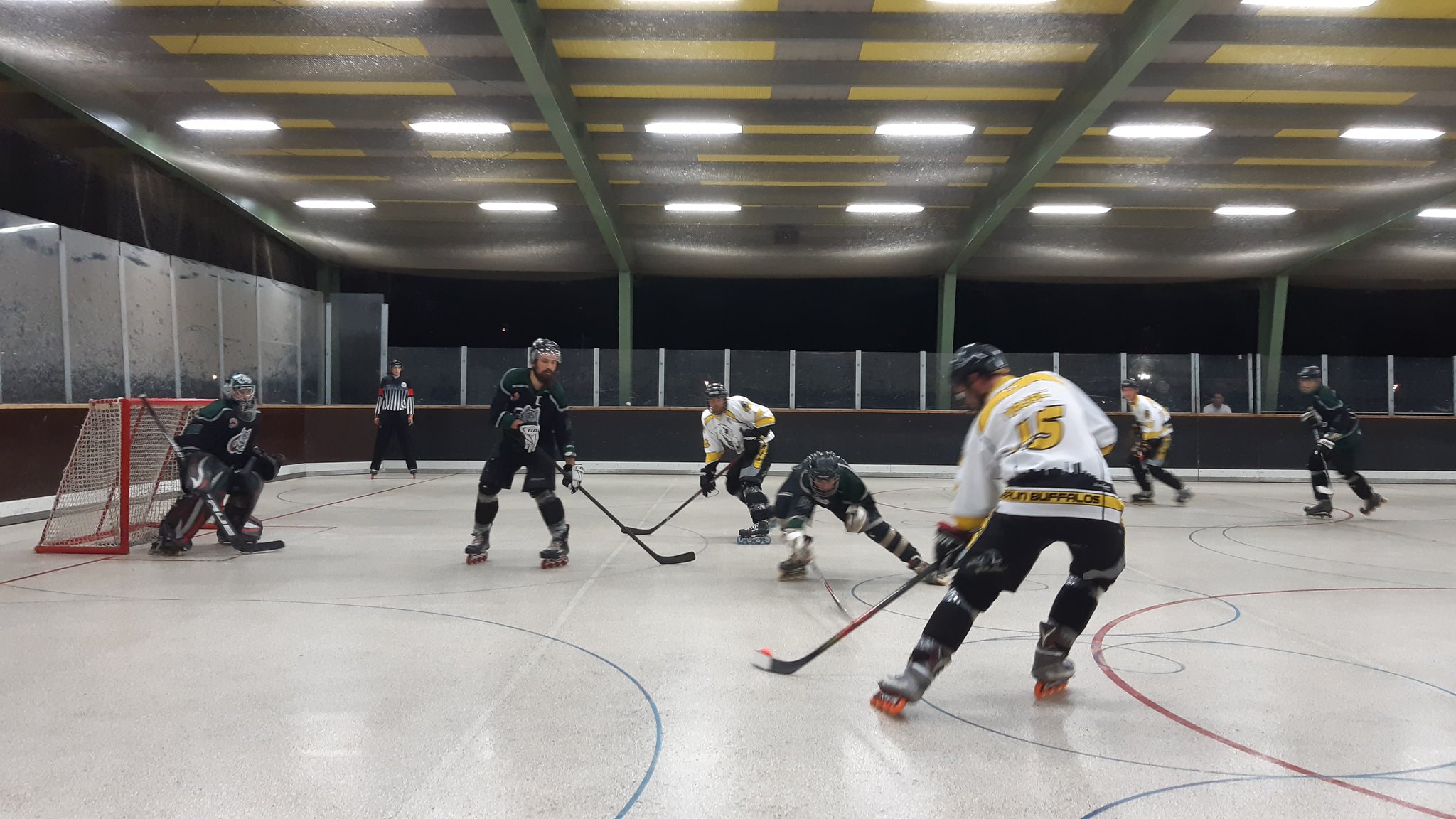Im ersten Playoffspiel der Regionalliga Ost verlieren die Herren I gegen die Buffalos knapp mit 6:4. Das Spiel fing denkbar schlecht an, die Buffalos nutzen ihre ersten drei Chancen und lagen gleich mit drei Toren vorne. Es schien eine klare Sache zu werden, und auf der Tribüne wurde es still. Das erste Spreewölfe-Tor wurde dann lautstark gefeiert und löste im Publikum und in der Mannschaft etwas aus. Nun wurden die Jungs wach und bissig und das Spiel gestaltete sich abwechslungsreich mit Chancen auf beiden Seiten. Der Rückstand konnte zwar nicht mehr aufgeholt werden, aber mit den Anschlusstreffer zum 4:6 zwei Sekunden vor Schluss bleibt es in dieser Playoffbegegnung spannend. Beim Rückspiel nächsten Mittwoch (31.8. um 20:15 Uhr) liegt noch alles drin.