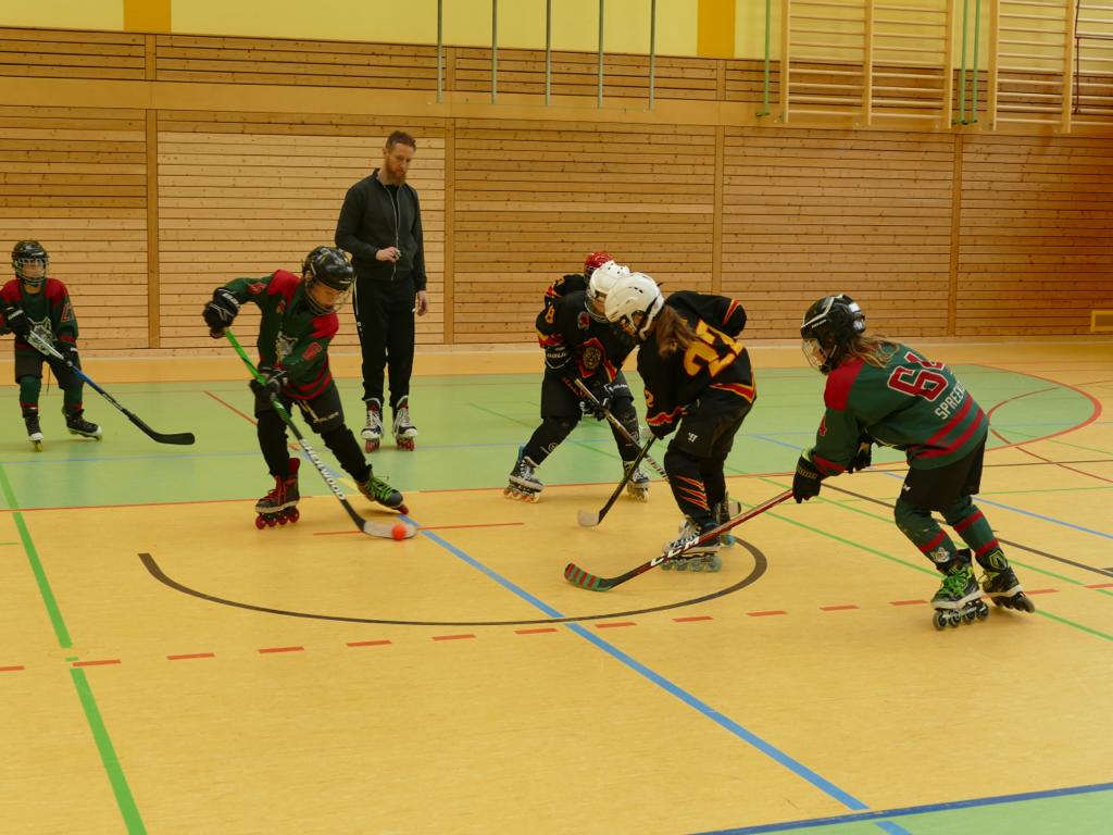 Die U8 trat Sonntags in der Lilly-Henoch-Halle zu ihrem zweiten Turnier an. Gegen die Devils mussten sich unsere Spreewölfe mit einem 1:4 geschlagen geben. Nah einer Motivationsansprache von Trainer Falk gelang ihnen im zweiten und dritten Spiel gegen die Buffalos ein 7:1 und ein 4:2. Und wenn man mal einen Lauf hat, wisst ihr ja, wie es weitergeht. Auch das letzte Spiel gegen die Potsdamer konnten die jüngsten Wölfe mit einem klaren 9:2 für sich entscheiden. Mit viel schönen Erfahrungen und zahlreichen Torschütz*innen haben die Kinder und Eltern einen erlebnisreichen Hockeysonntag erleben dürfen.