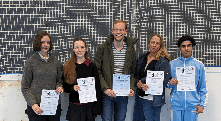 Wir gratulieren Ayoub, Steffi, Veronika, Max und Lulu zur erfolgreichen Prüfung und wünschen euch für eure zukünftige Trainerarbeit viel Erfolg.