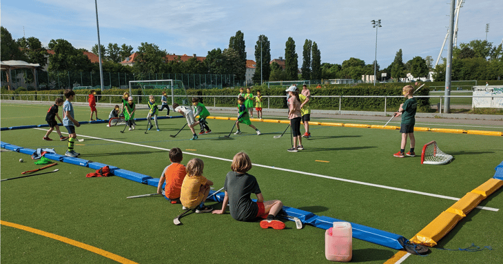 Am vergangenen Mittwoch fand das alljährliche Sportfest an der Thomas-Mann-Grundschule statt, bei dem Schülerinnen und Schüler aller Altersstufen voller Enthusiasmus und Energie teilnahmen. Das Fest bot eine Vielzahl von Aktivitäten, darunter die traditionellen Bundesjugendspiele sowie das Kennenlernen neuer Sportarten. Bei den Spreewölfen konnten die Kinder ihre ersten Erfahrungen mit dem Hockeyschläger sammeln - zuerst noch ohne Inlineskates, aber vielleicht sehen wir uns ja bald bei einem sportlichen Wandertag auf der Rolle. Während der ganzen Zeit fanden sich schnell Teams zusammen, verteilten die Positionen, einigten sich auf die Regeln und hatten viel Spaß beim gemeinsamen Spiel.