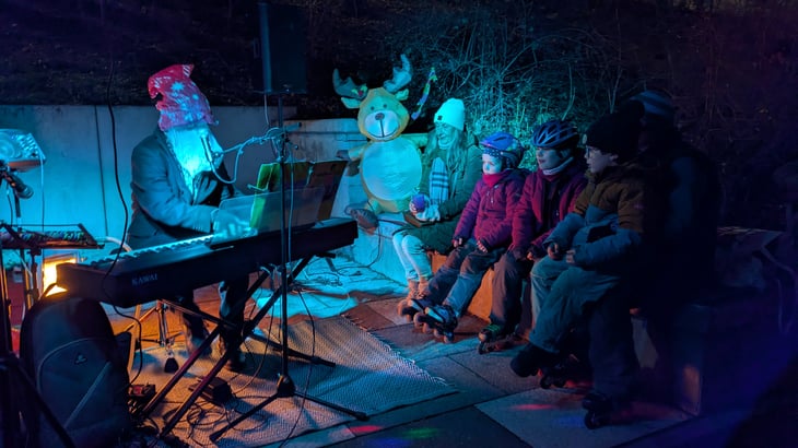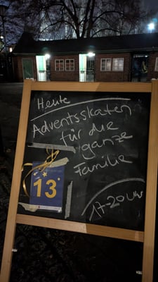 Am vergangenen Wochenende fand das Adventsskaten der Spreewölfe statt. Eingebettet in den "Lebendigen Moabiter Adventskalender" tobten sich Klein und Groß auf der festlich geschmückten Fläche aus und stärkte sich an Glühwein, Kinderpunsch und leckeren Waffeln. Bereits beim Betreten des Geländes kam eine zauberhafte Weihnachtsstimmung auf und neben dem mit Spreewölfekugeln geschmückten Weihnachtsbaum begeisterte uns Jeff mit Weihnachtsliedern, eigenen Kreationen und unterhaltsamen Showeinlagen.