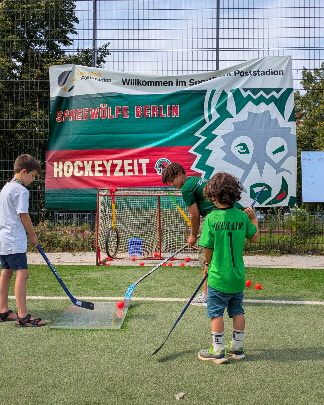 Beim Familiensportfest im Kiez zeigte unsere U-16 den Kindern und Eltern aus der Nachbarschaft, wie man den Geschicklichkeitsparcours am besten absolviert und mit dem härtesten Schuss den Highscore knackt. Der Rekord des gestrigen Tages lag bei 129 km/h und war auch nachmittags nicht mehr zu toppen. Trotzdem hatten wir viel Spaß und bedanken uns bei Yeela, Elias, Mathis, Ida, und Lovis für ihren Einsatz beim Familiensportfest 2025.