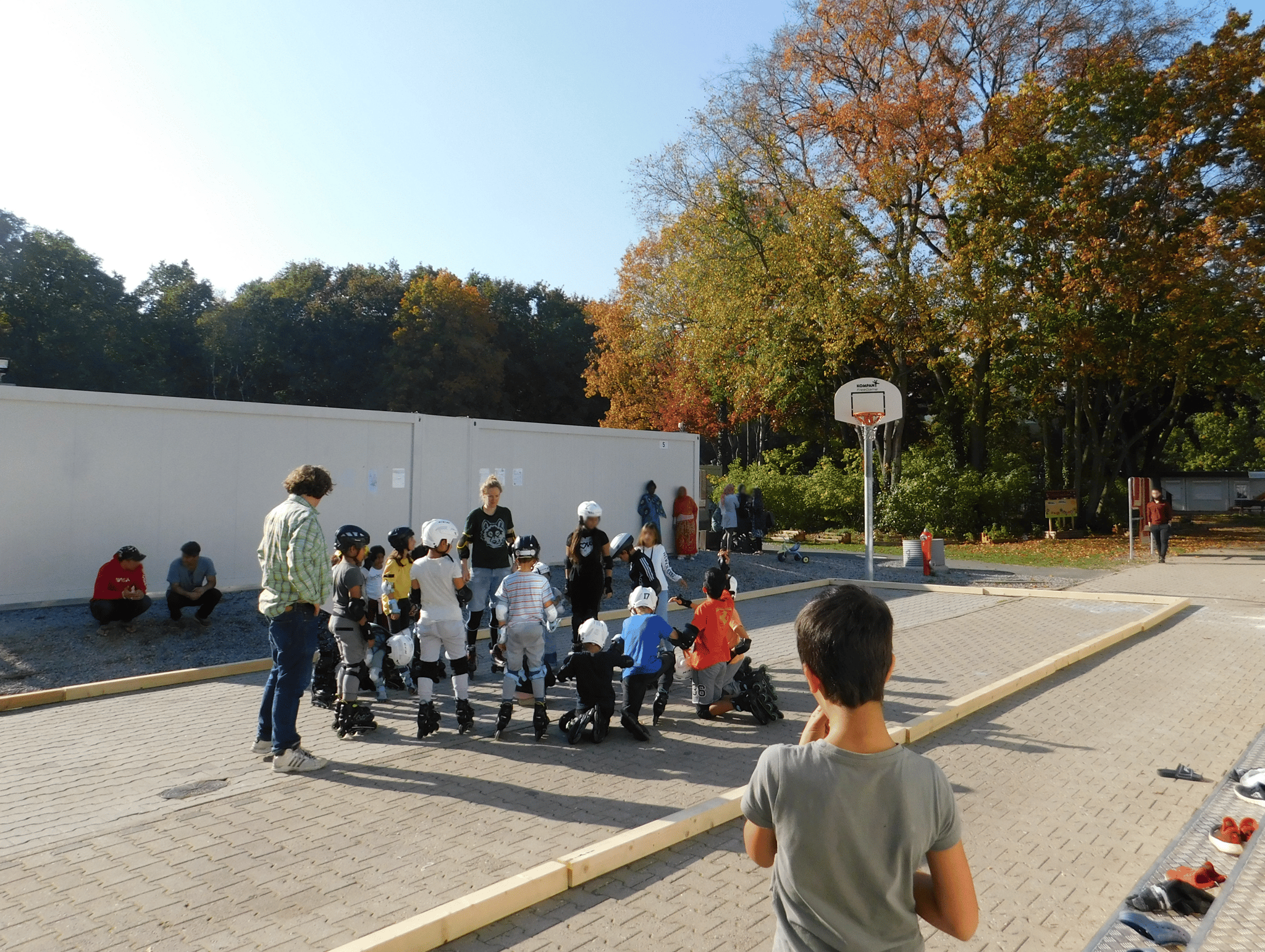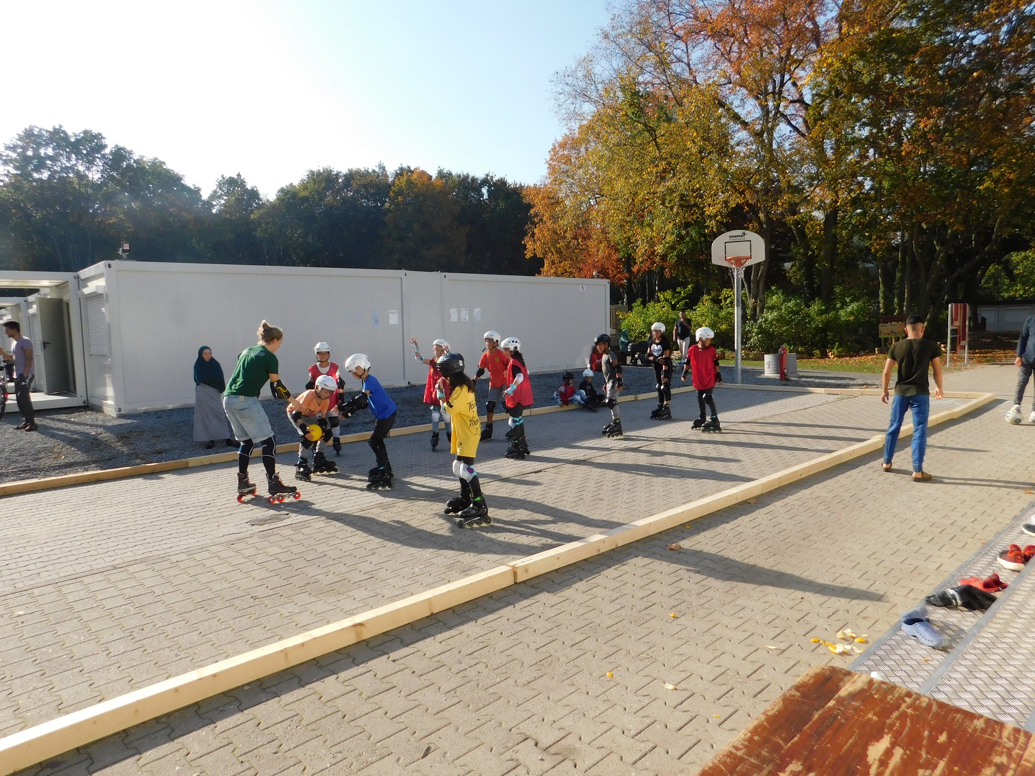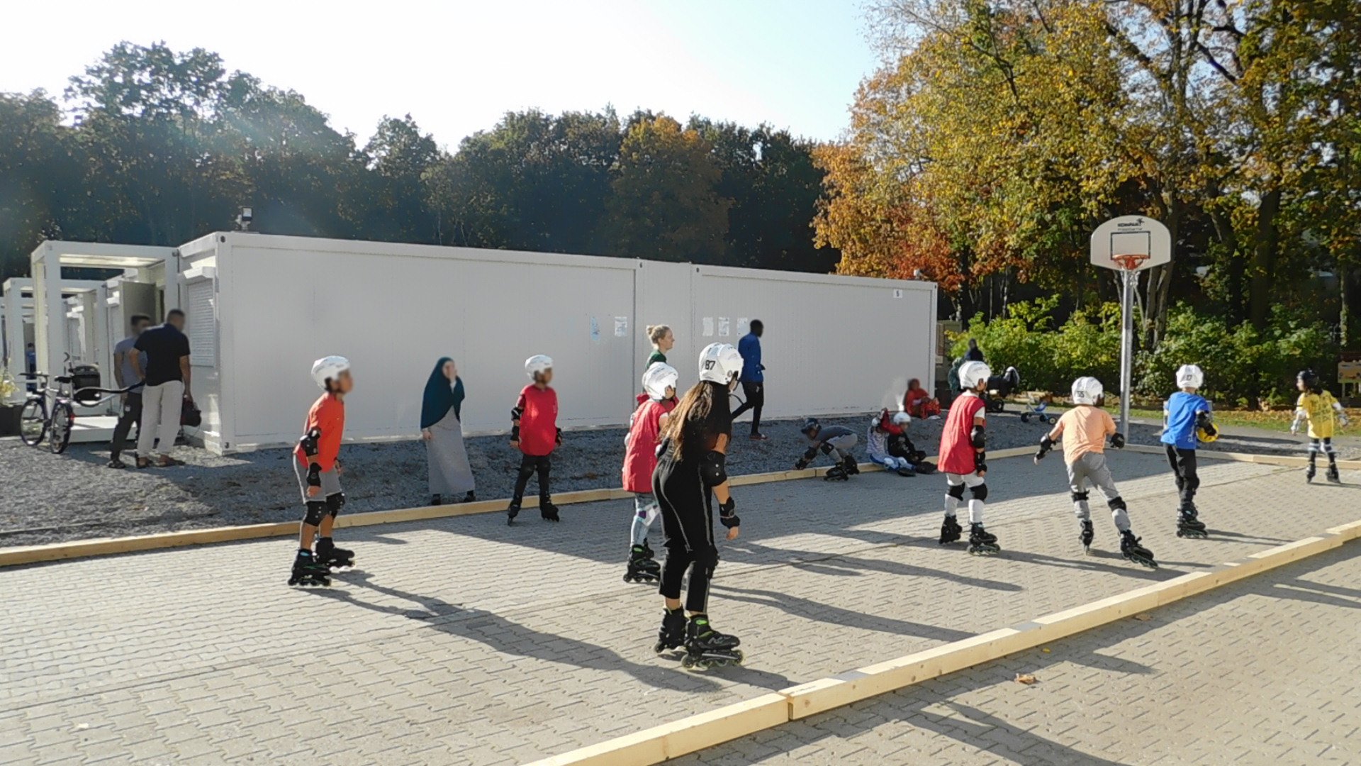 In Kooperation mit dem BENN-Standort Wittenau-Süd durften wir mit 15 Kindern einen Nachmittag lang Inlineskaten. Dafür sind wir mit dem skatemobil zur Geflüchtetenunterkunft auf dem Gelände der ehemaligen Karl-Bonhoeffer-Nervenklinik gefahren. In diesem Jahr entsteht dort das neue Ankunftszentrum für Geflüchtete, welches den Standort in Tempelhof ablöst. Bereits heute wird das Gelände jedoch von vielen Familien bewohnt.