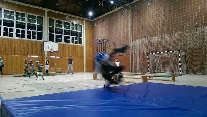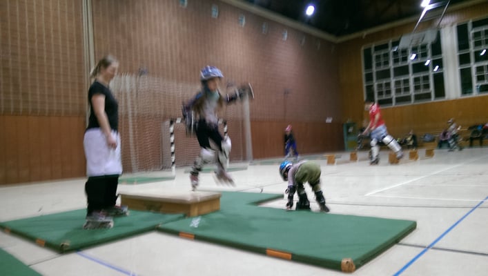 Die Premiere des "Familiensonntags", bei dem Kinder und ihre Eltern gemeinsam auf der Fläche stehen, war ein voller Erfolg. Nebst dem eigenen Nachwuchs durften wir auch neue Kinder aus Moabit kennenlernen. Angefangen mit Fallübungen, die von den Kindern deutlich mutiger ausgeführt wurden als von den Erwachsenen, sind wir in einen komplexeren Parcours übergegangen. Auf vier Bahnen gab es unterschiedliche Hindernisse zu überwinden. Nach einem gemeinsamen Ballspiel durften sich alle entscheiden, ob sie lieber weiter Inlineskaten oder ein gemeinsames Skaterhockeyspiel spielen wollen.