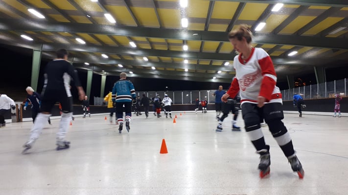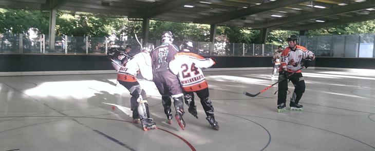 Wenn am Dienstag und Freitag die Skates geschnürt werden, bahnt sich im Poststadion etwas an. Mit Tanzeinlagen, Linienläufen, Kurventechniken und dem obligaten Abschlussspiel bringen die TeilnehmerInnen der Lauf- und Hockeykurse jede Woche Stimmung ins Haus. Musikalisch untermalt für das optimale Rhythmusgefühl rollen teilweise an die 25 Leute und mehr über die Fläche. Und was früher ein kleines Abschlussspiel war, ist inzwischen zu einem richtigen Turnier mit mehreren Mannschaften geworden. Was geblieben ist: Der Spaß, die gute Stimmung und die Vorfreude aufs nächste Training!