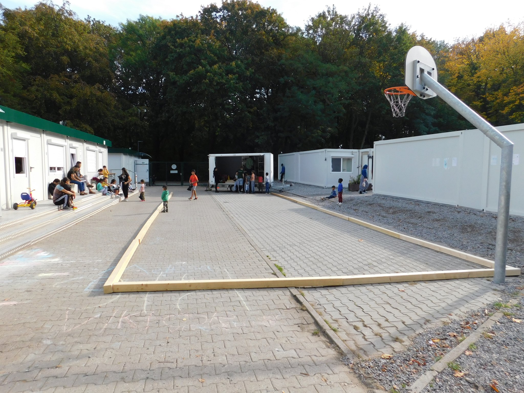 Zudem durften wir mit den Kindern aus der Unterkunft in Reinickendorf eine neue Fläche bespielen. Direkt an der Unterkunft organisierten wir mit Albatros gGmbH einen Skate- und Hockeynachmittag. Die Kinder halfen uns fleißig beim Reinigen der Fläche. Nachdem in gemeinsamer Arbeit alle Steinchen weggewischt wurden, verlegten wir die Bande und es konnte losgehen. Die vielen ZuschauerInnen aus der Unterkunft machten den Nachmittag zu etwas ganz Besonderem.