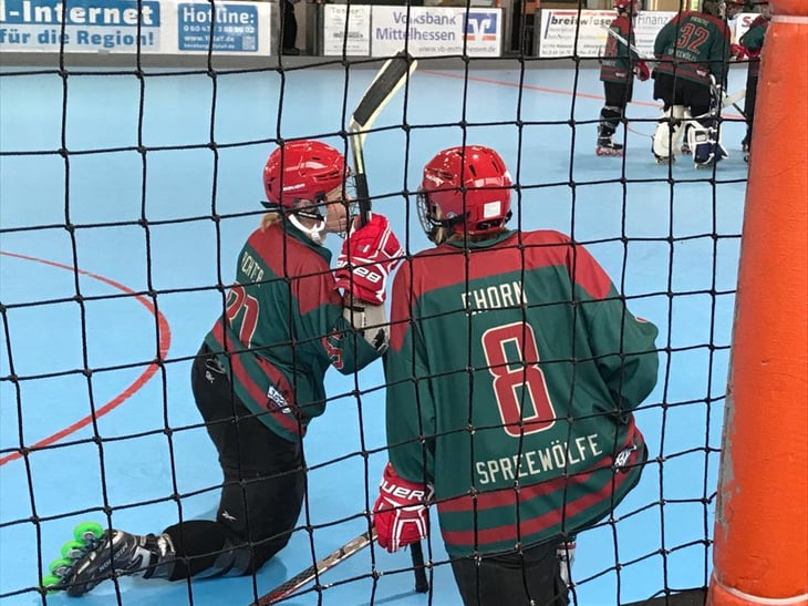 Was für ein Spiel, was für ein Powerplay! Aber von vorne: Während das Hinspiel mit 11:5 verloren ging und die Spreewölfe das Feld auch in den letzten 4 Spielen ohne Punkte räumen mussten, waren die ZuschauerInnen nicht allzu optimistisch im Hinblick auf das heutige Spiel gegen den starken Gegner. Bereits nach 18 Sekunden wurde eine Strafe gegen uns ausgesprochen, die der Gegner auch gleich zum 0:1 nutzte. Ob es wirklich ein Halten war oder ob es dem Spieler auf der Spielerbank einfach zu eng wurde, wird wohl immer ein Geheimnis bleiben. Drei volle Linien standen nämlich heute bereit, um es dem Gegner so schwer wie möglich zu machen.