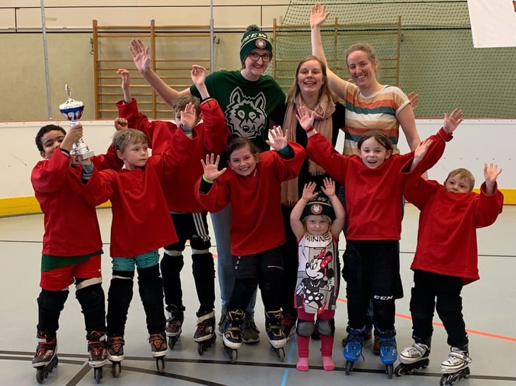 2018 starteten wir mit sieben Kindern das Nachwuchstraining. Nun sind anderthalb Jahre vergangen und die Gruppe wächst stetig weiter. Im Alterskorridor von aktuell 5 bis 12 Jahren findet sich jeden Freitag eine heterogene Gruppe zusammen und bietet sowohl NeueinsteigerInnen als auch erfahreneren, älteren Kindern eine Grundausbildung im Inlineskaten und Hockeyspielen.