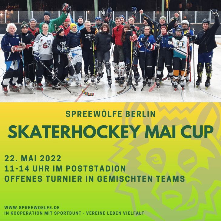 Nächste Wochenende ist es soweit - der erste "Skaterhockey Mai Cup" geht an den Start. Gemeinsam mit unseren ukrainischen Freund*innen spielen wir an diesem Tag ein offenes Turnier in gemischten Teams. Ihr habt noch Fragen oder wollt euch gleich anmelden? Dann schreibt uns eine Nachricht an nachwuchs@spreewoelfe.de.